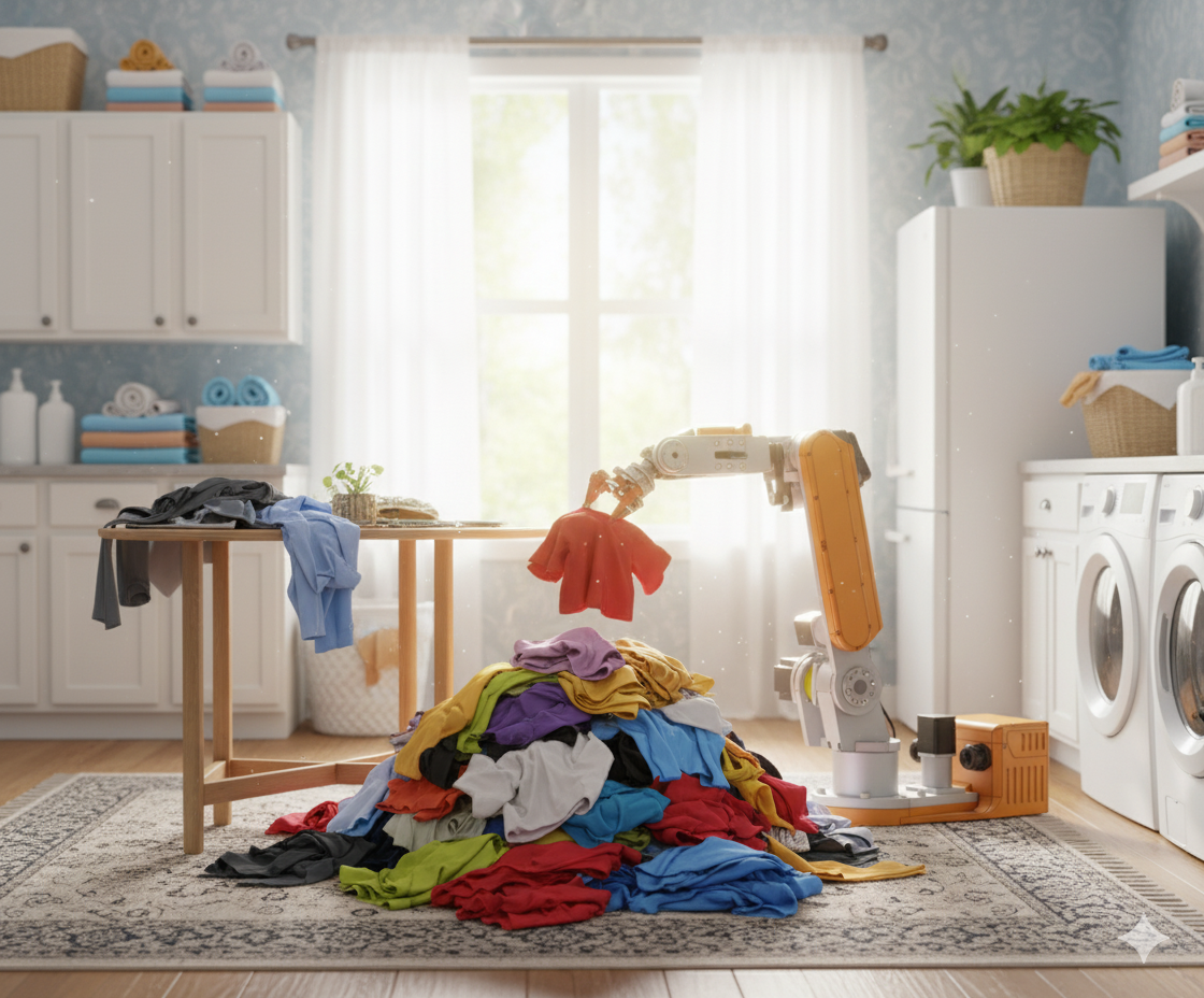 Unfold and Identify: Place the garment on a workspace and begin a methodical unfolding process. I’m not publishing my strategy in case I manage to secure a $400 million investment from Jeff. After each step, the robot re-evaluates the scene, attempting to classify the item (e.g., t-shirt, towel) until a confidence threshold is met.