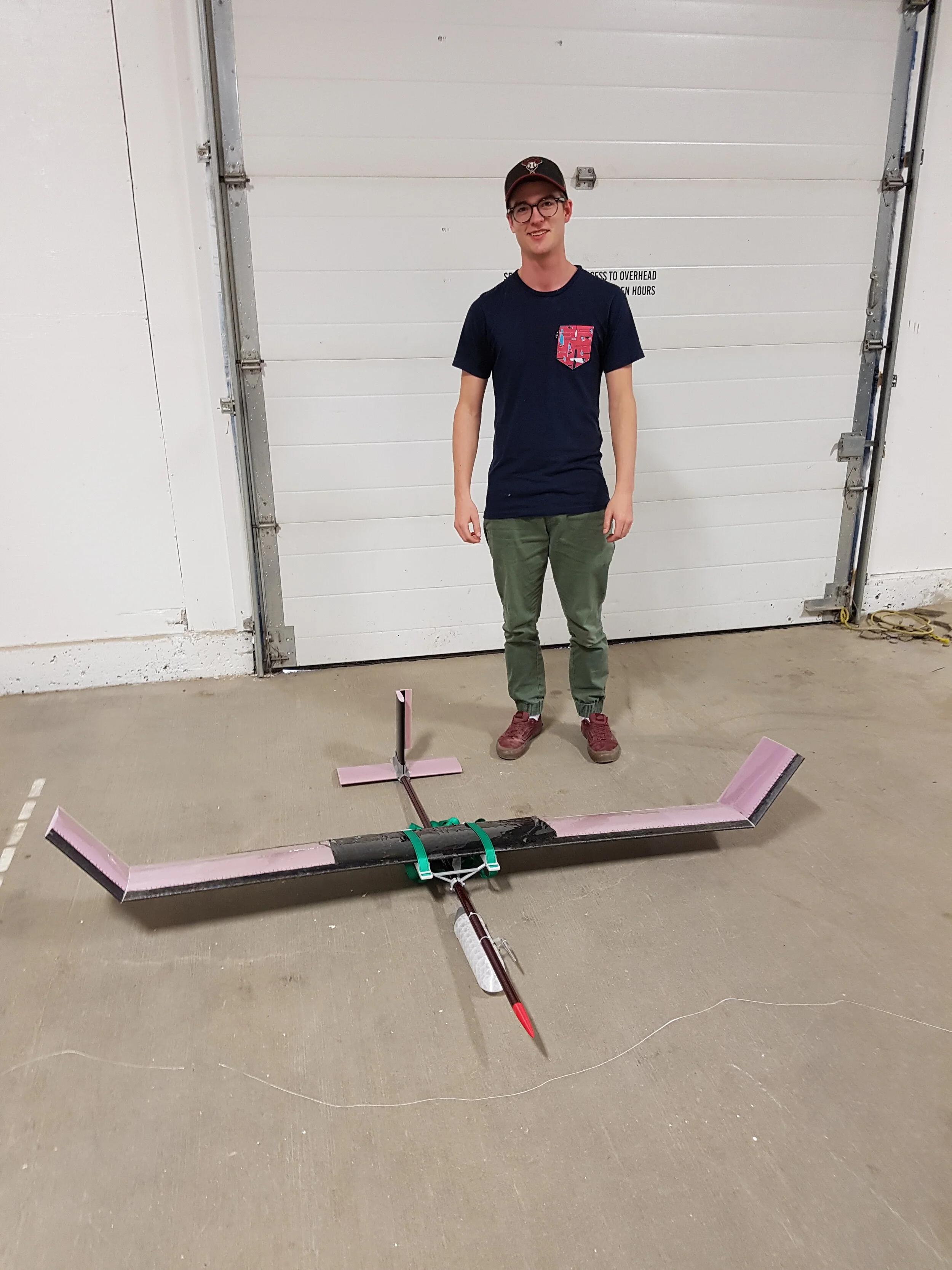 The structural integrity of the 2 meter span wing was of critical concern, even more so than for a typical aircraft because of its tether. Complicating this further was the use of a foam core wing with varying fiberglass and carbon fiber layers of skin.